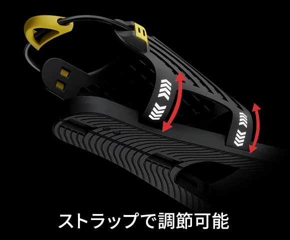 Folding Finsは足の幅や甲の高さに合わせてストラップを調節することができます。
