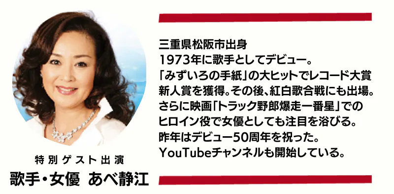 1973年に「コーヒーショップで」で華々しく歌手デビューを果たし、今年で芸能界での活動50周年を迎えるあべ静江さんが、その大ヒット曲を披露します。