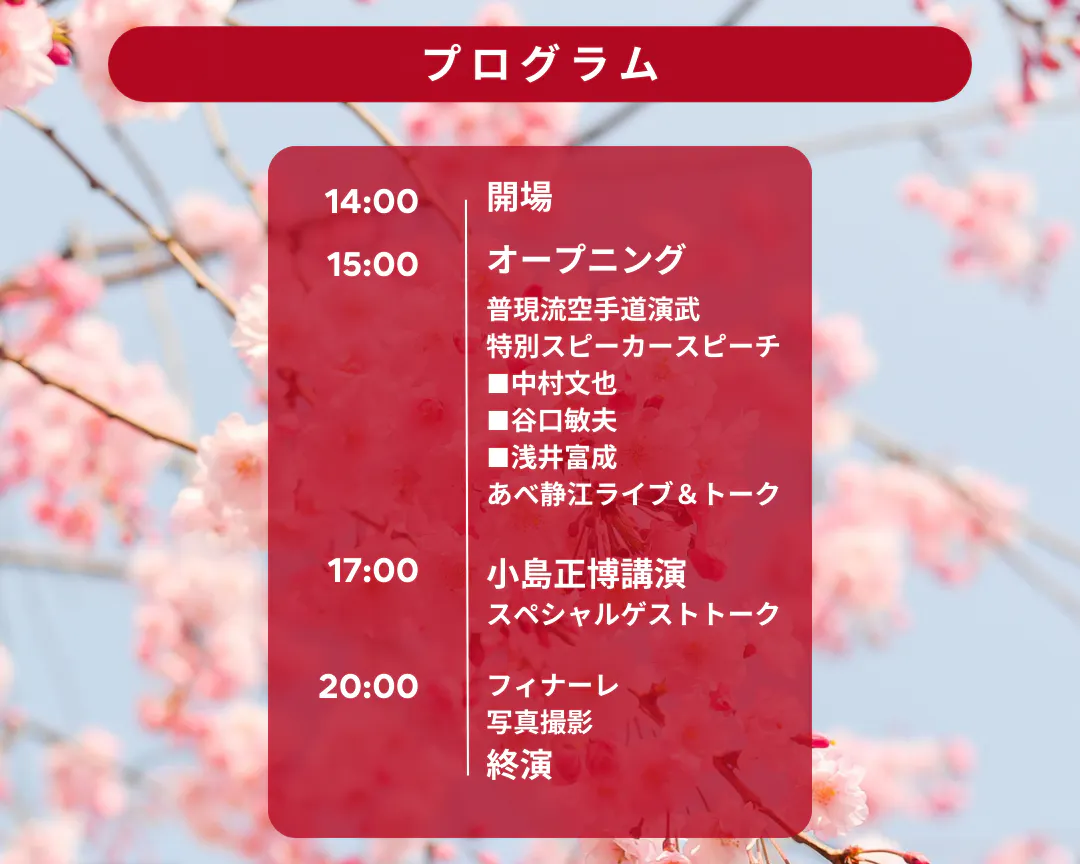 ゲストスピーカー3名、武田邦彦先生、漁火会の名倉会長、歌手のあべ静江さんをはじめとした多くの著名人が参加予定です。