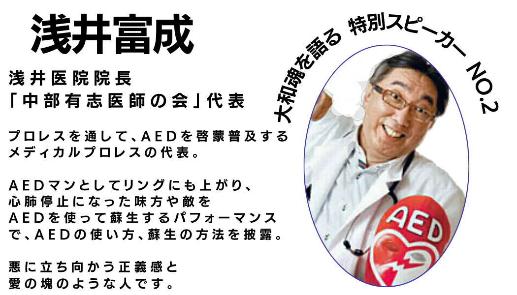 さらに、AED普及活動に尽力する浅井富成医師との深いトークセッションもお楽しみいただけます。