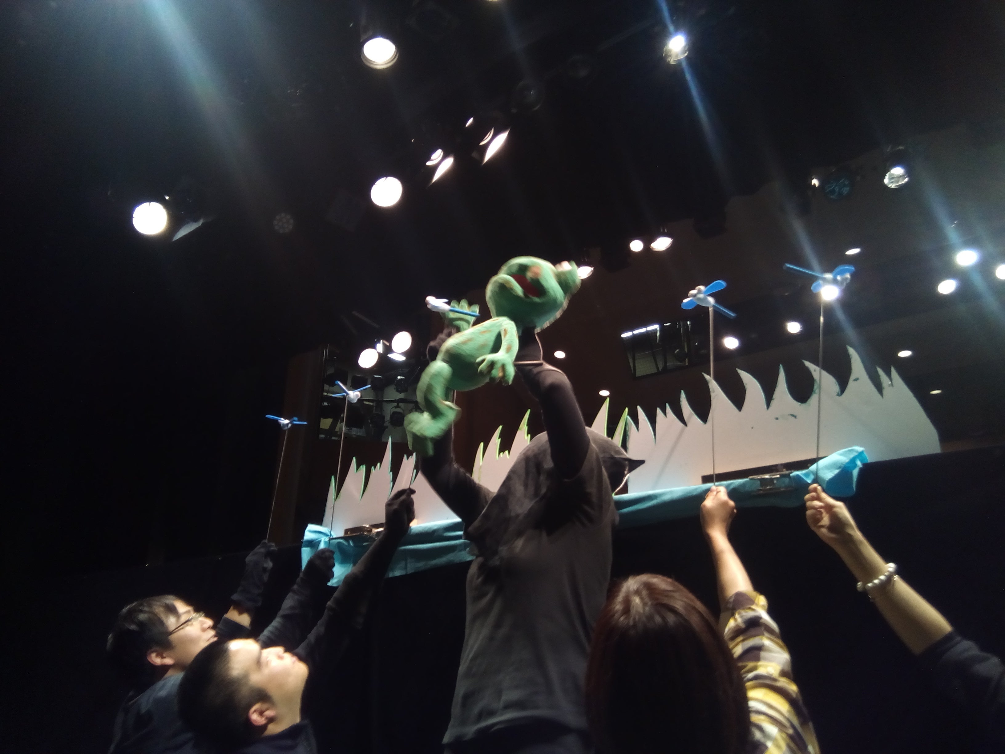 落語に続いて考えたのは人形劇。石狩川流域でもトノサマガエルやアズマヒキガエル等の国内外来種が殖えて広がってきていて、在来のカエルの脅威となっていました。が、これもなかなか伝えにくい問題なので、物語として伝えたらどうか?という話になりました。