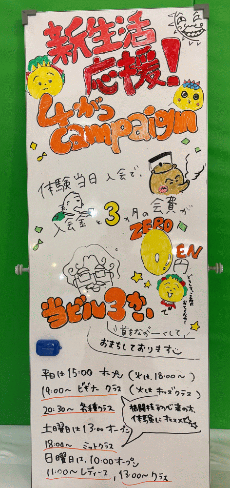 体験当日入会で体験料+入会金+会費3ヶ月分が無料!