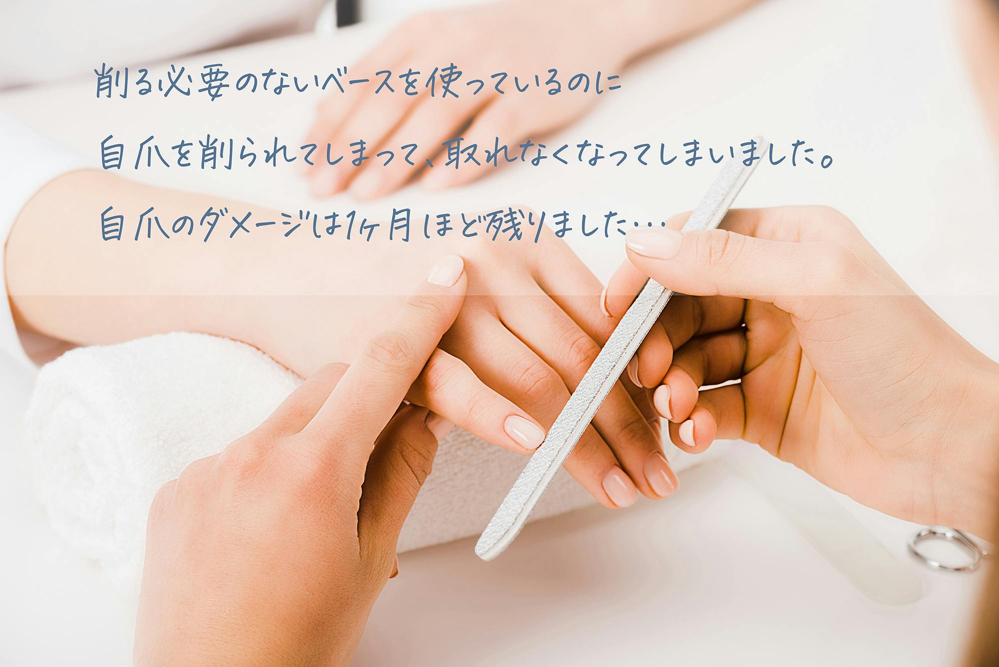 また他のサロンに行った時、間違った施術をされてしまい爪にベッタリとジェルが張り付いてしまい