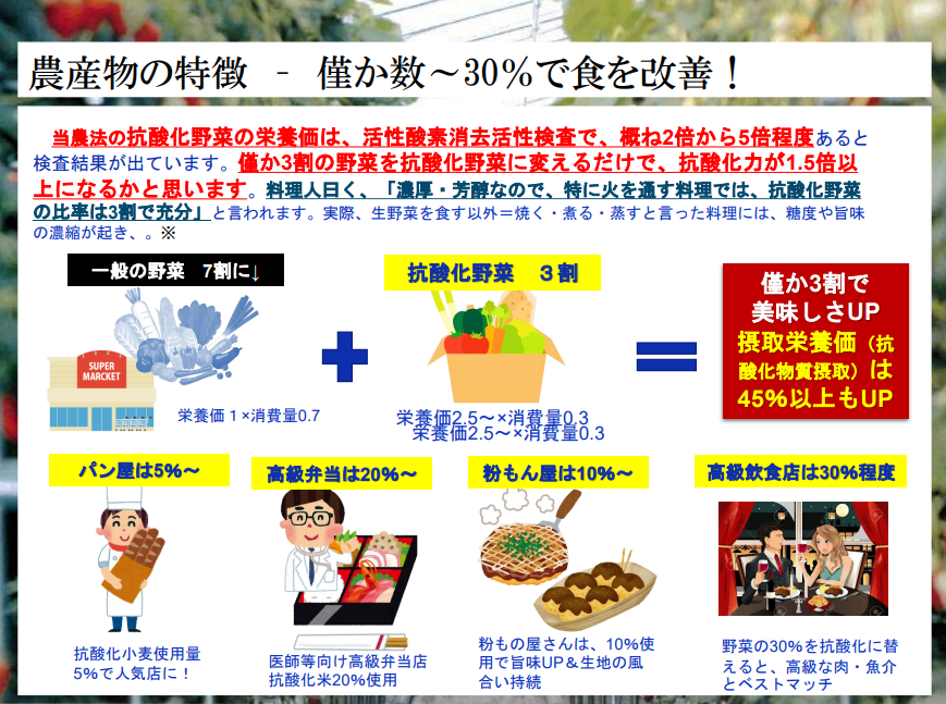 ・抗酸化堆肥を使った農作物の生産を通じて、環境に配慮した持続可能な農業を支援し、地域社会に貢献します。