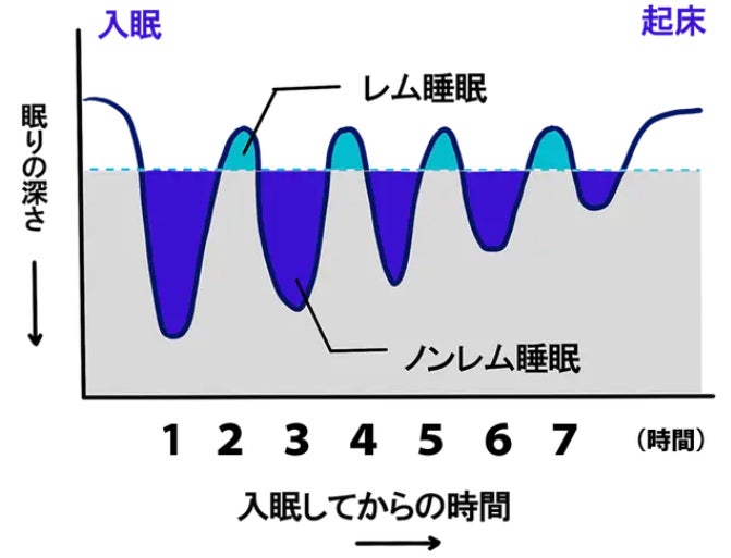 睡眠にはノンレム睡眠とレム睡眠があります。ノンレム睡眠は身体も脳も休んでいる状態の眠りで夢は見ますが覚えてません。又この時成長ホルモンの分泌や記憶の定着そして脳内不要物の処理など重要な事が行われています。レム睡眠は体は寝ていて脳は起きててこの時見た夢は覚えています。この時も考えをまとめたり記憶を整理し定着させたりとても重要な事が行われています。レム睡眠とノンレム睡眠どちらも大切で、両方をバランスよくとり睡眠の質を上げて前半のノンレム睡眠をより深くすることと、十分な睡眠時間をとって睡眠後半に多く現れるレム睡眠を確保することを意識することが大切です。睡眠、特にレム睡眠はまだほんの一部しかわかっていません。
