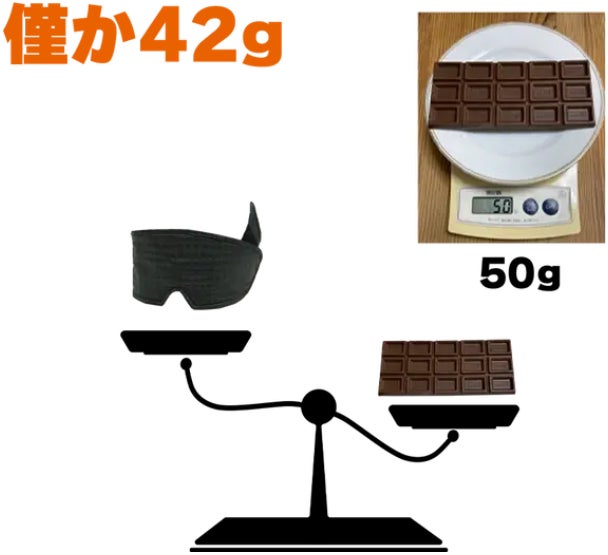 本体の中は、羽毛を使用しており全体が僅か42g(板チョコより軽い!)となっていて、軽さがソフトな感触と相まって、快適感を感じる事ができて、圧迫感や不快感が殆どなく、これも装着感が限りなく0に近い理由なのです。