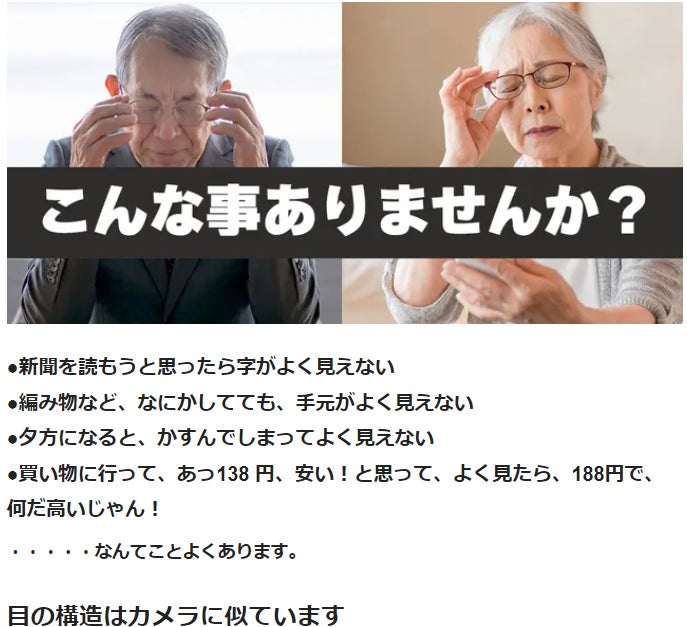 パソコンやスマートホンを見る時間がますます増えていき、スクリーンを見つめる仕事がどんどん増えていくと、私達の見る力がとても大事になってきます。もし、急に見えなくなってしまったらと思うと、それは私達にとって恐怖でしかありません。