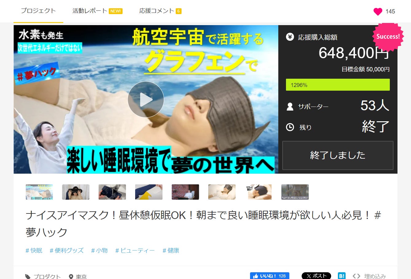 2024/11/01 11:45いつもお世話になってます。直接お願いがあり投稿させて頂きました!現在、世界唯一の水素を目元で発生させ眼の治療をしながら深い睡眠にすんなり入れるアイマスクの更なる研究の為の資金を集めるためにクラウドファンディングに挑戦中です!今の研究が進めば、口元で発生させた水素を体内に取り込む事で、色んな医学的貢献が期待できます。 【ご支援の締め切りは11月28日23時までです】目標金額30万円を目指す挑戦となります。今現在も採算度外視の4ETECHの研究は続いており、その研究を弊社は力強く後押しするべく奮闘しています。最後まで頑張りますので、もしよろしければ、温かいご支援やプロジェクトの応援、シェアをしていただけると嬉しいです!どうぞよろしくお願いいたします。 もっと見る