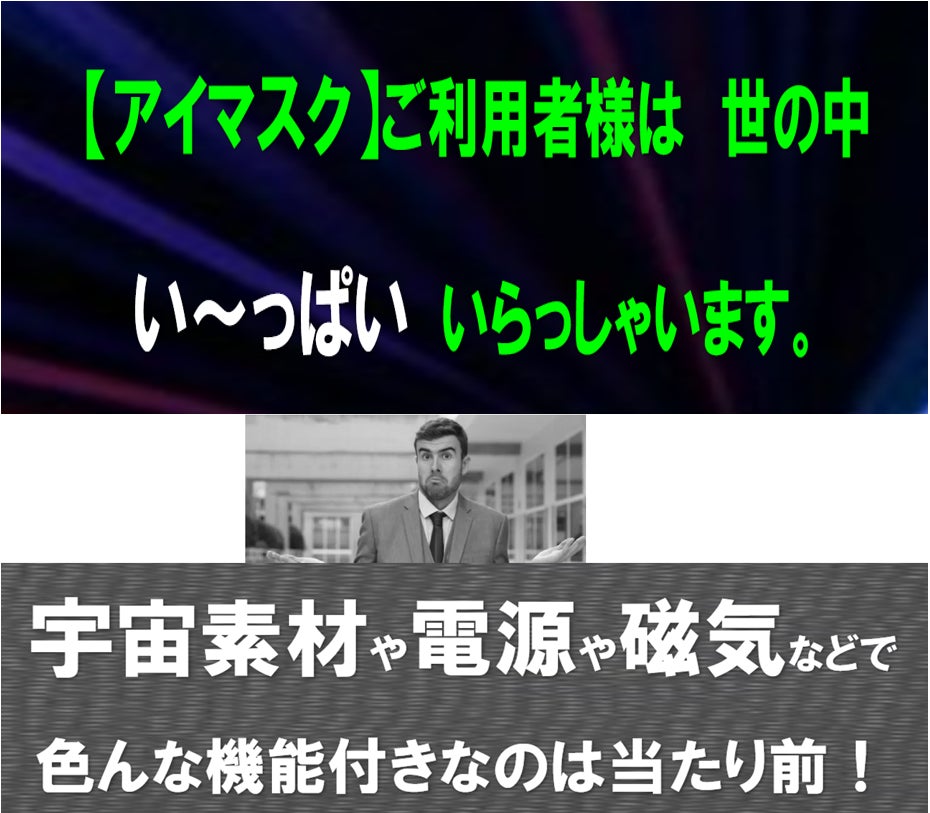 ある日、仕事をしていて知らない間に夜中の1時になってしまった事がありました。朝用事があるので6時に起きる事が決まってるので慌てて寝たのですが、枕元に置いてあるこのアイマスクを装着して寝ました。6時に起きていつもの日課をこなしていてすぐには気が付かなかったのですが、30分位して
