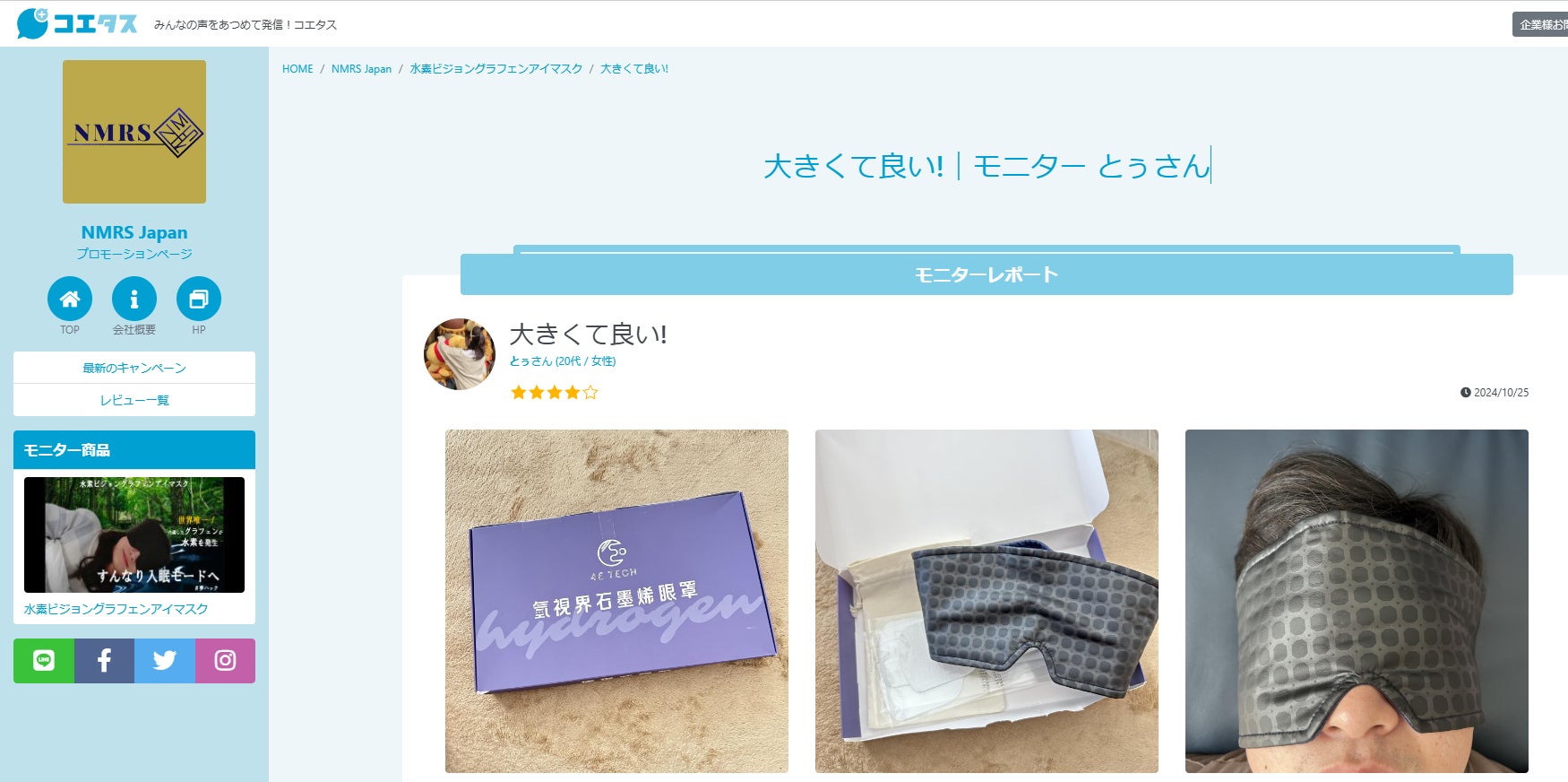 水素が発生するアイマスクなんてとっても気になって応募したら当選して嬉しいです!