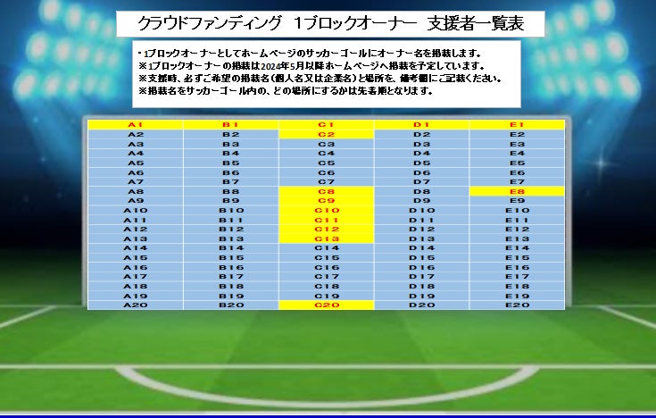 ※ホームページ上にデザインされたサッカーゴールの、1ブロックにオーナー名(個人名又は企業名)を掲載します。