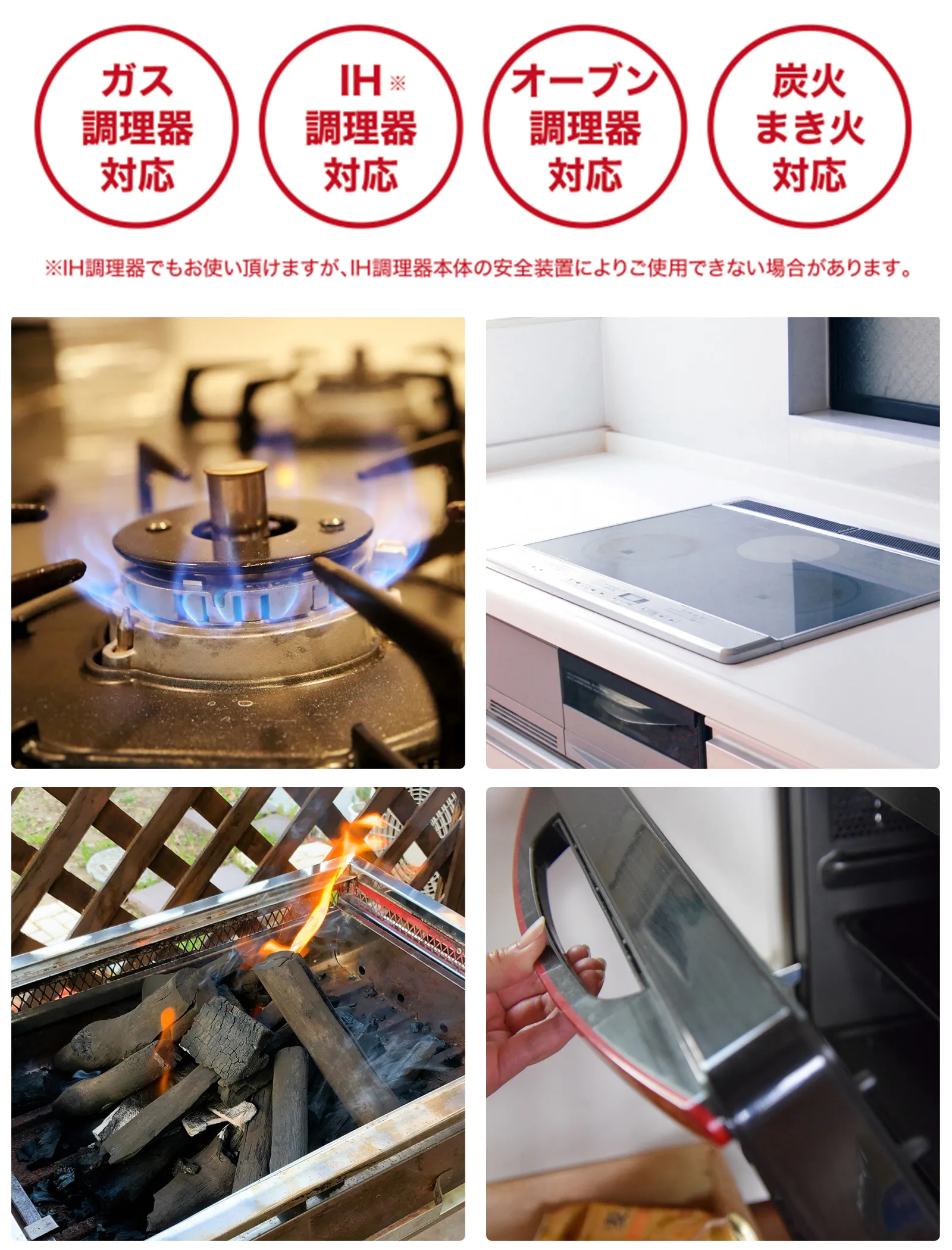 鉄の持つ高い「熱伝導率」と優れた「保温性」で、高火力調理にも対応。