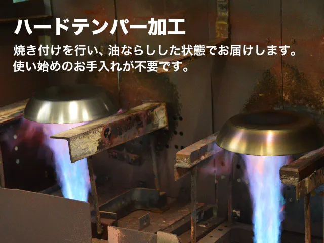 鉄製の最初の使いにくさ(サビ・こびりつき)を解消するため、「ハードテンパー加工」という加工技術を施しております。