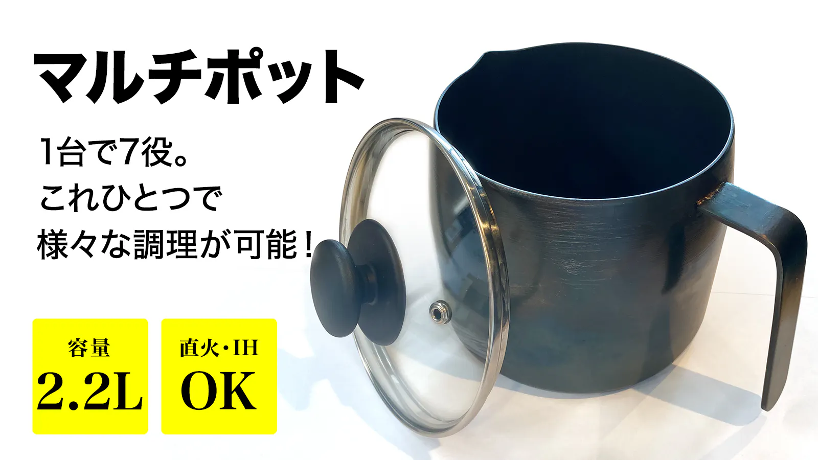 お鍋、フライパン、ケトルの良いところを組み合わせた便利な調理器具のマルチポット。皆さんのキッチンにも色々なサイズのフライパンやお鍋があるのではないでしょうか。フライパンやお鍋が複数あると調理には便利ですが、その分収納スペースの問題が発生します。