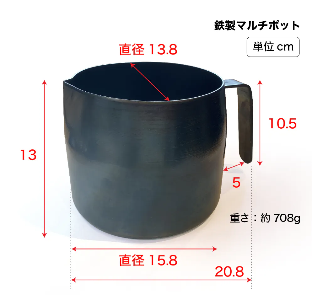 ・マルチポット、鉄蓋、コルク持ち手カバー(各1個)