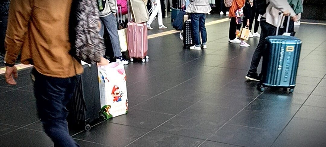 構内を歩いていると、中にはスーツケースを1人で2つ運んでる女性の方、自分の体と同じくらいのサイズのスーツケースを運ぶ子どもの姿も見られます。