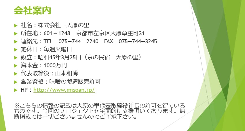 ①【民宿大原の里】社長の協力を今回事前に得ているので、初期の集客でつまずかない。また、直接現場に赴くこともできるので、宿泊した外国人のお客様に情報の発信を協力して頂くことができる。