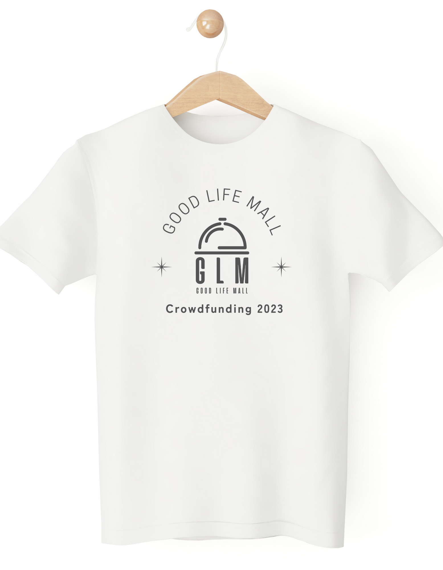 クラウドファンディング用に作成したオリジナルTシャツ(S/M/L/XL)とGOOD LIFE MALLウェブショップにご支援者様(スポンサー様)のページにてお名前掲載(文字のみ)