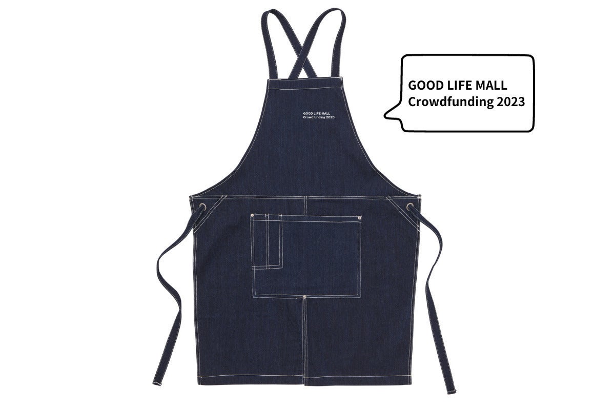 【12000円】クラウドファンディング用に作成したオリジナルウォッシュキャンバス&ツイルエプロン(12.2ozのデニム生地・綿90%、レーヨン10% サイズF 腰紐長さ160)とGOOD LIFE MALLウェブショップにご支援者様(スポンサー様)のページにてお名前掲載(文字のみ)