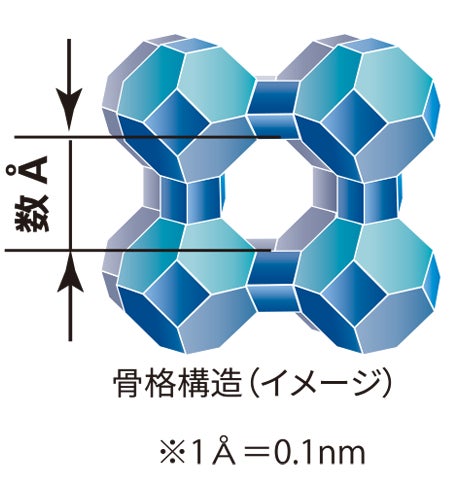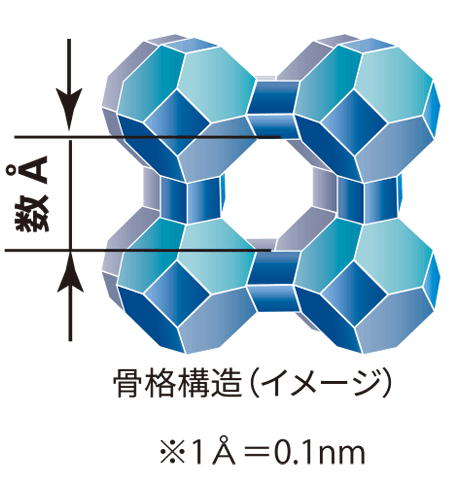 ゼオライトは1グラムあたり約50平方メートル以上の表面積を持ち、非常に細かい孔(穴)があります。
