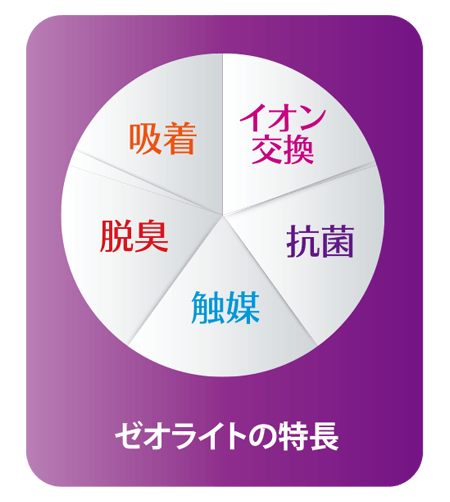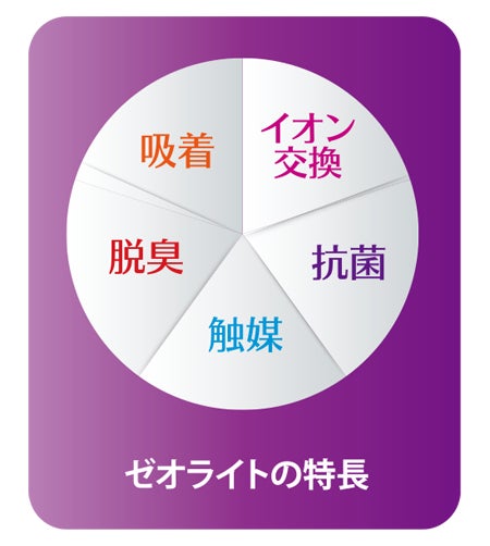 ゼオライトはそのイオン交換能力、抗菌性、触媒作用、脱臭効果、吸着力などの特性を活かして多岐にわたる製品開発が期待されています。