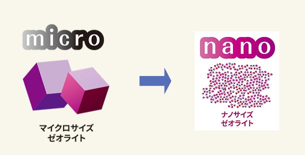 このナノサイズゼオライトは、日本で初めて開発された特許技術で、加齢臭退治を可能にしました。