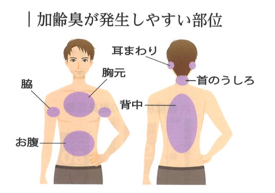 加齢臭は皮脂成分が酸化することで生じ、特に胸や背中などの体幹部で発生しやすくなります。