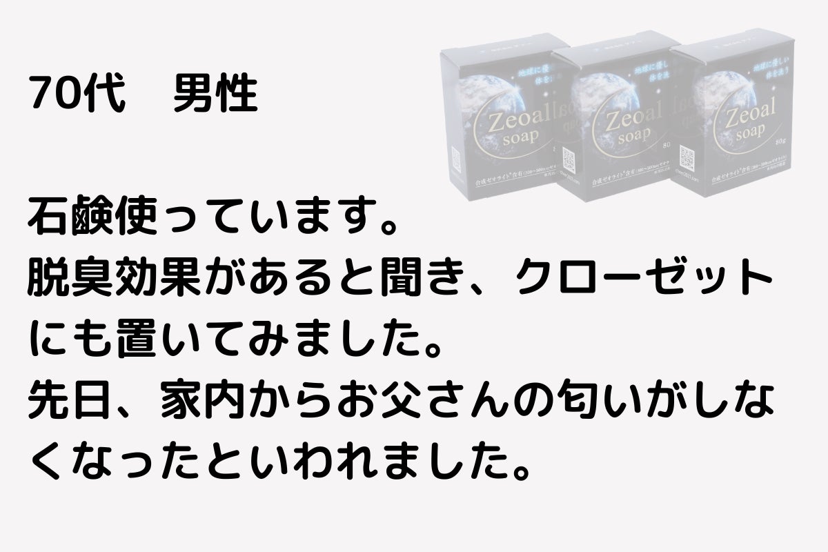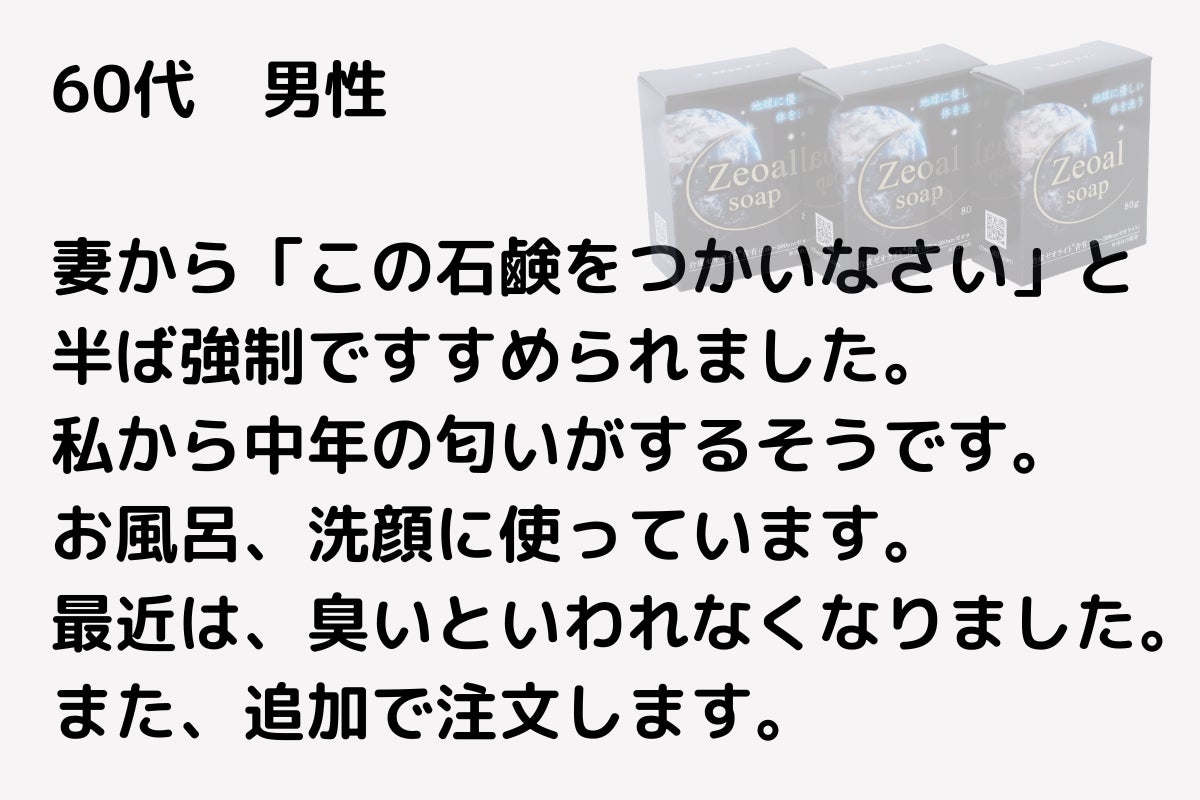この石鹸は、ゼオライトの機能性を活かして、加齢臭の原因となる汚れを効果的に洗い流せます。