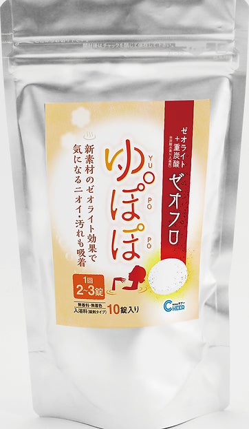 「ゆぽぽ」は重炭酸+ゼオライトの入浴料で、ゼオライト効果で気になるニオイや汚れを吸着し、加齢臭ケアに効果的です。