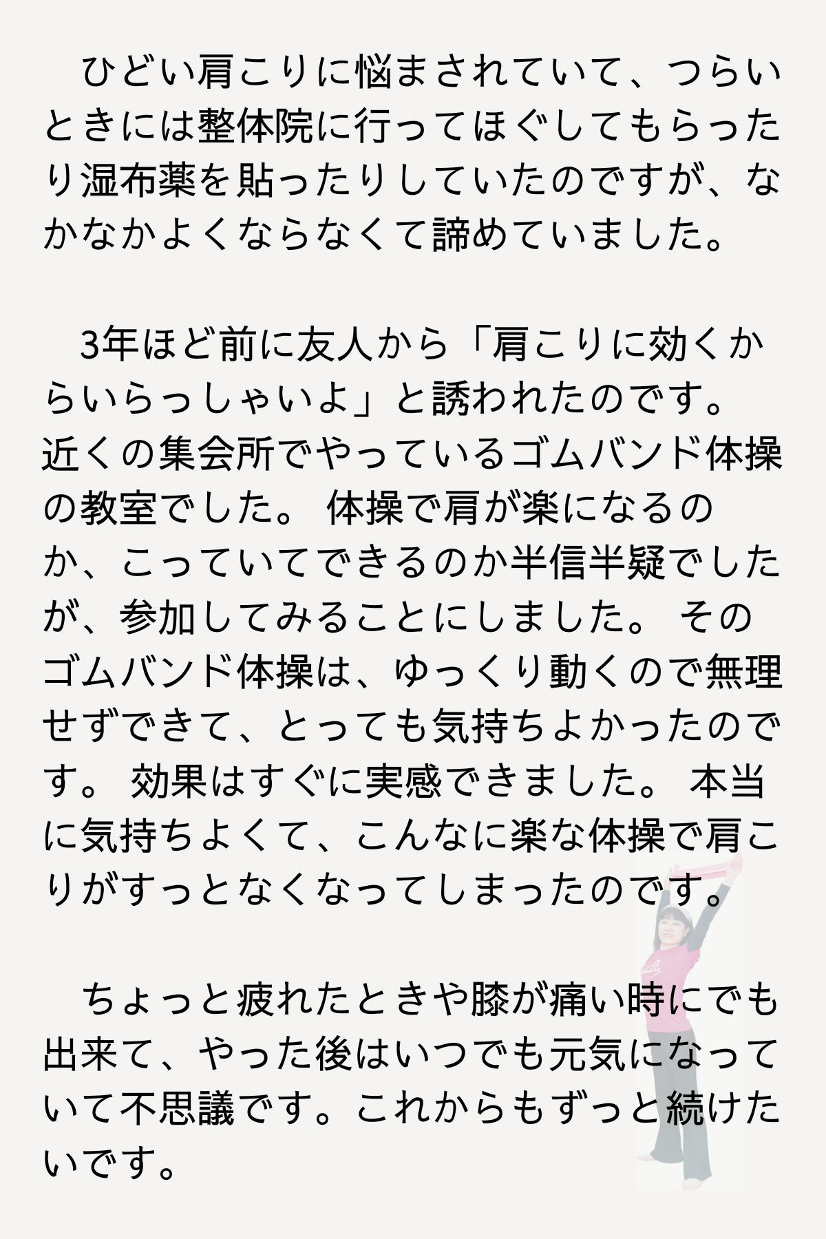 アルファビクスはバンドの負荷が苦痛ではなく心地よさ、楽しさにつながる運動です。