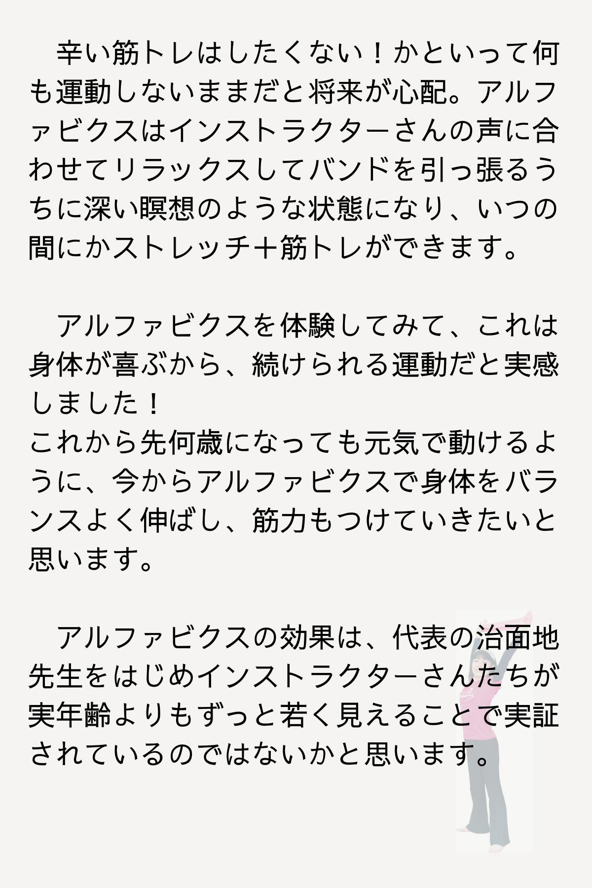 体験したからこそわかるアルファビクスの良さ!