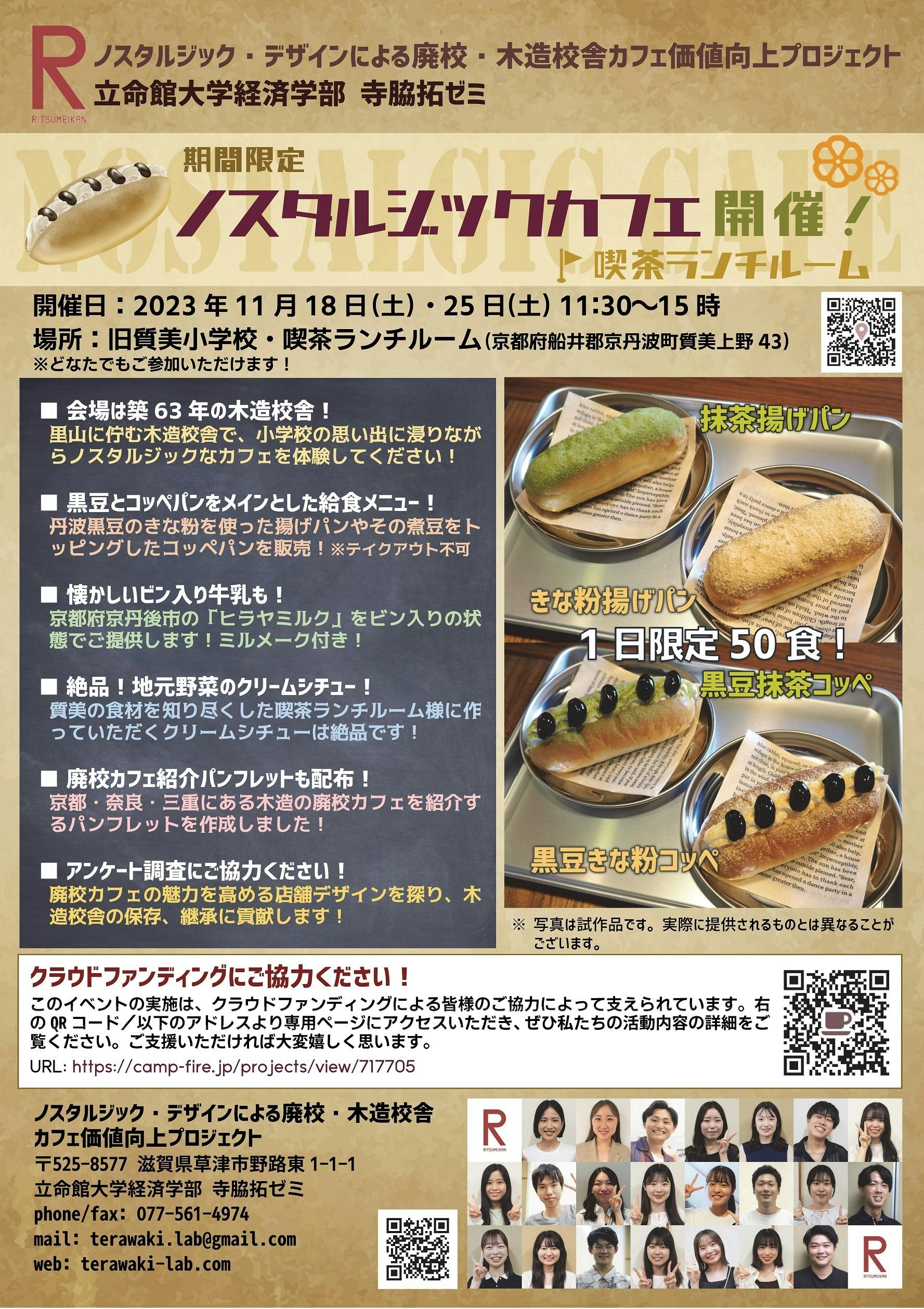 11月18日(土)と25日(土)はぜひ、京都府京丹波町にある旧質美小学校「喫茶ランチルーム」様までお越しください!