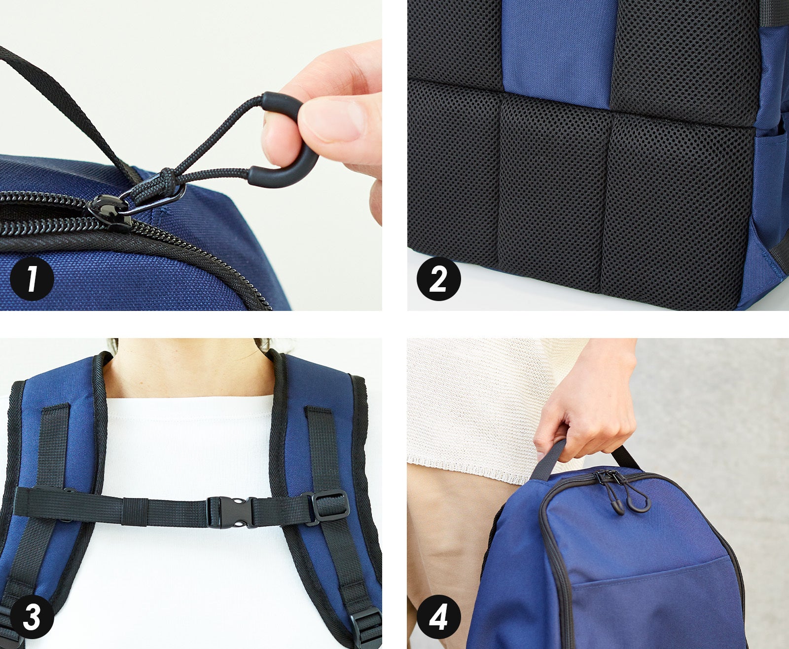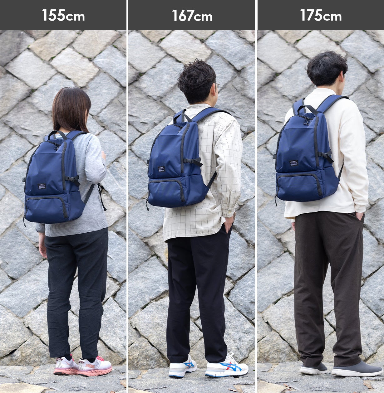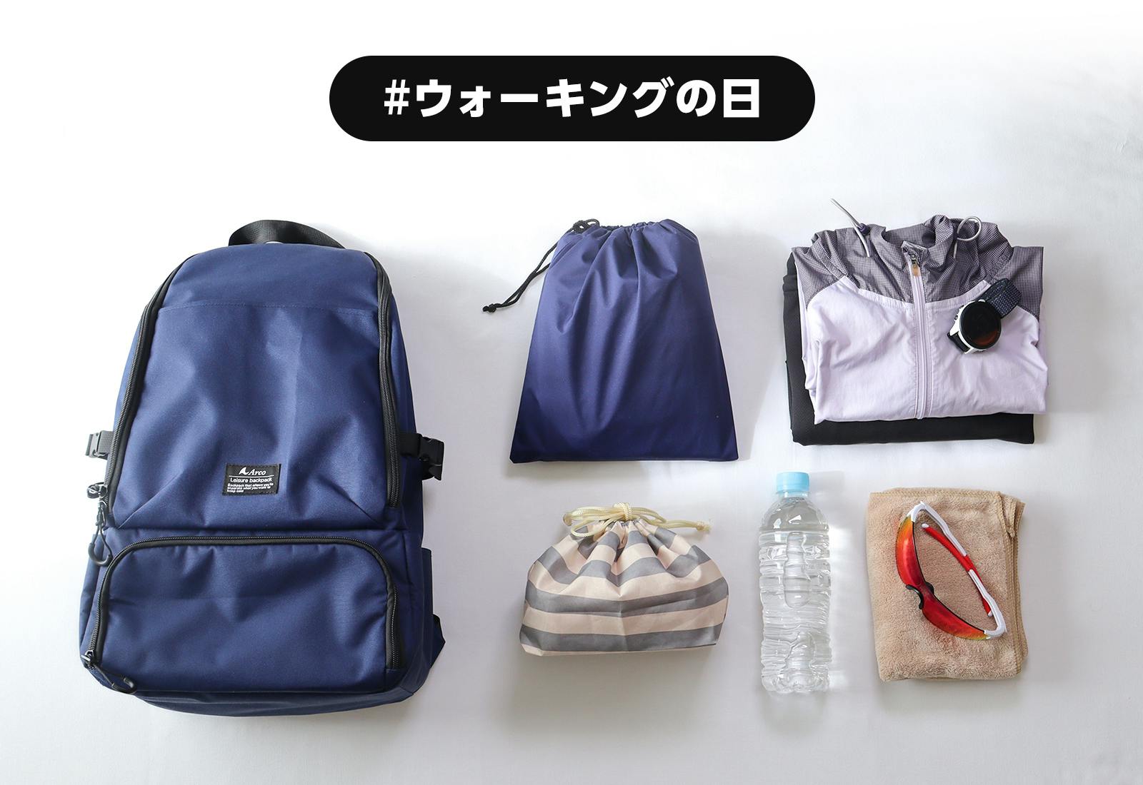 【1】ウォーキングしやすいよう、バッグの形状は両手が自由に使えるリュック形状でなければならない