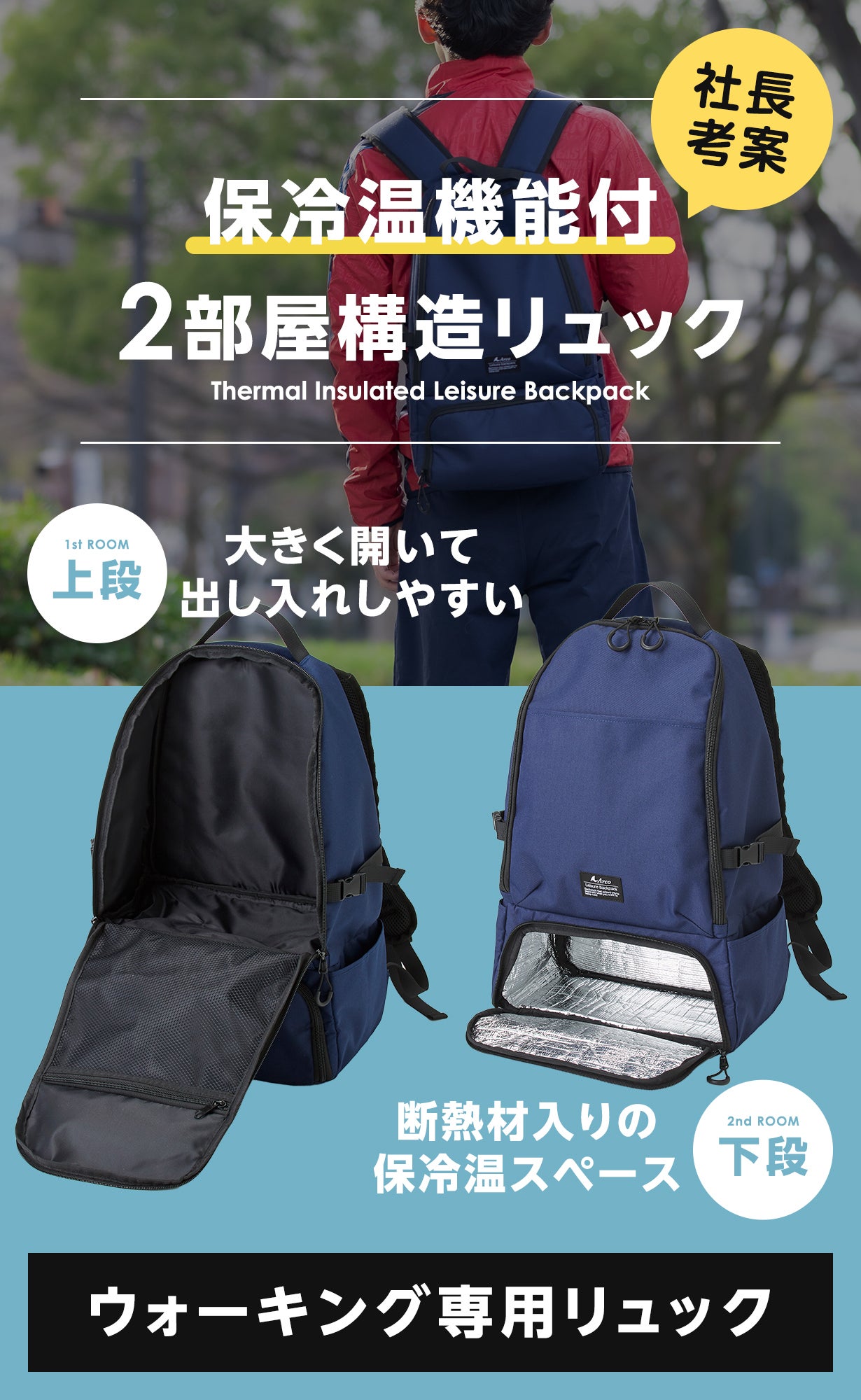 「保冷スペース付」2部屋構造リュック