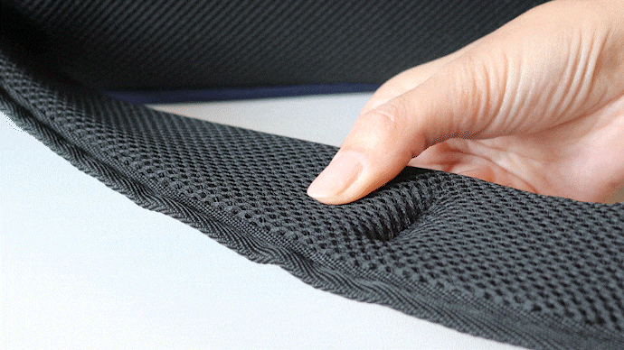 ②背中はムレにくいメッシュ構造でいつでもサラッと