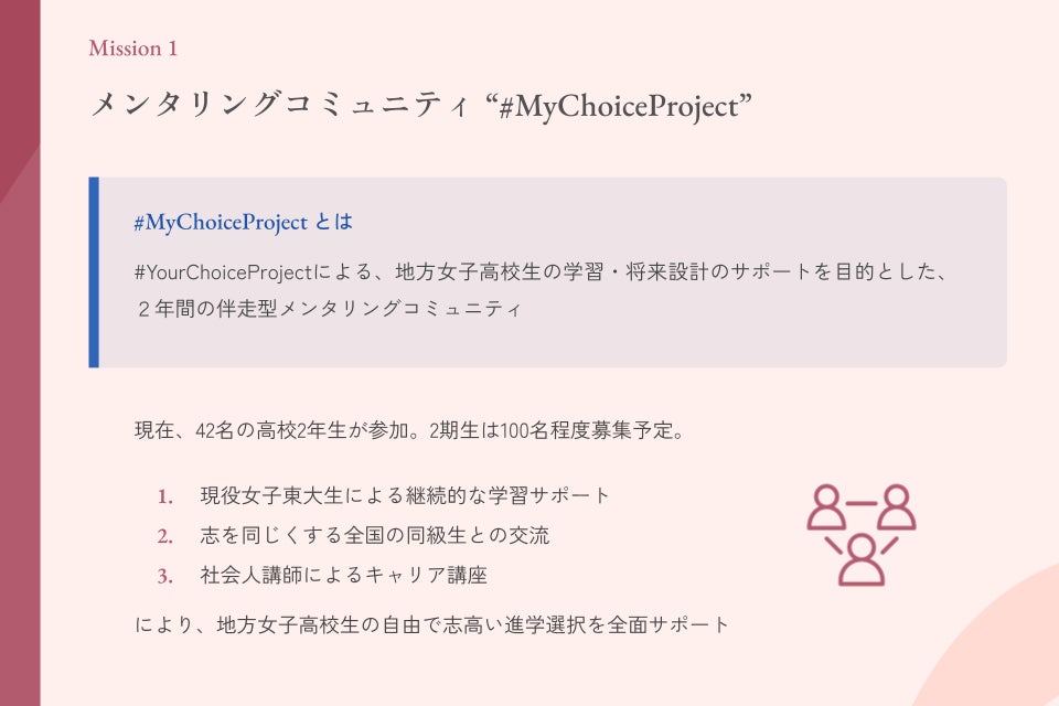 #YourChoiceProjectによる、地方女子高校生の学習・将来設計のサポートを目的とした、2年間の伴走型メンタリングコミュニティです。