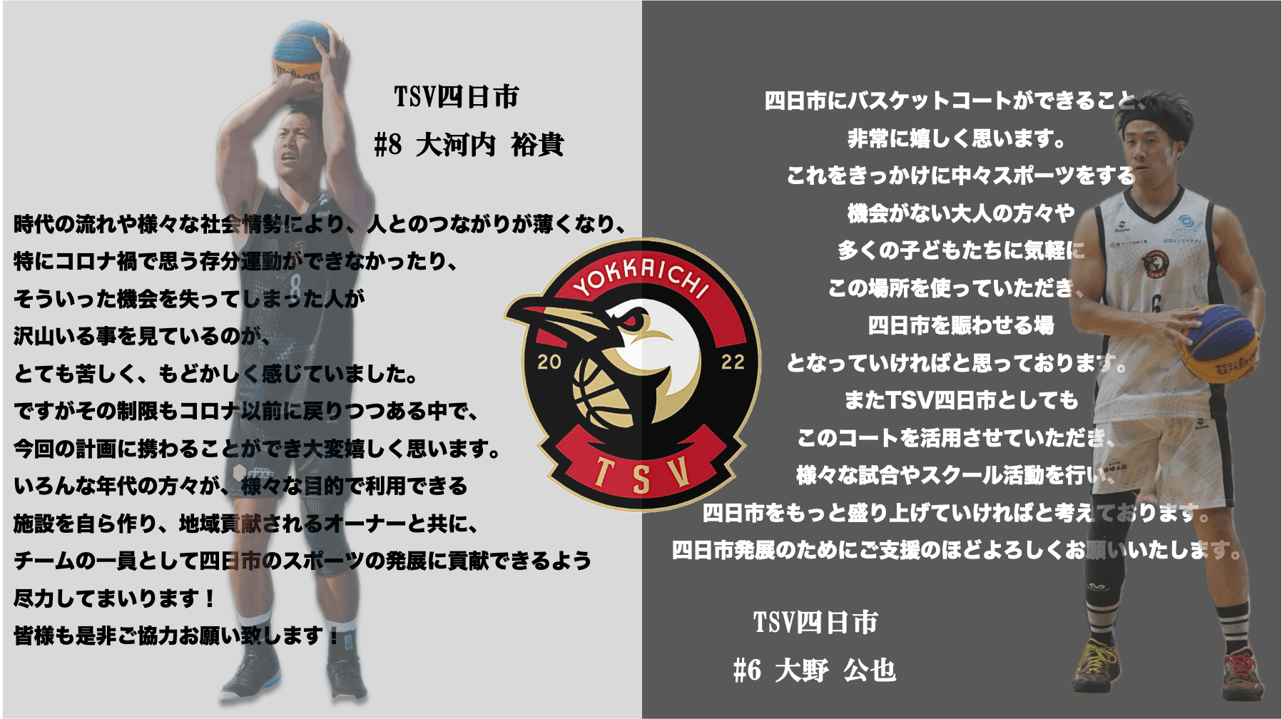 TSV四日市がレンタルコートを運営し、さまざまなイベントを開催する拠点づくりを実現したいです!