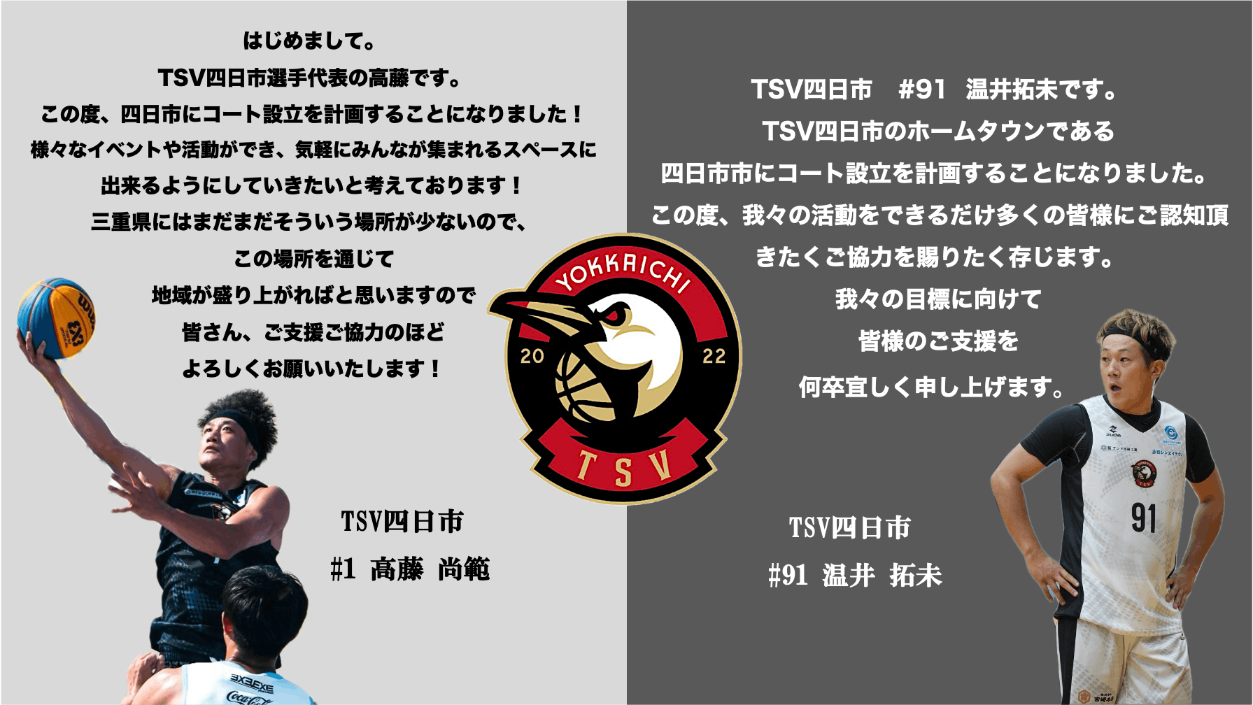 バスケットボール3×3のTSV四日市、GMの春日孝夫と申します。