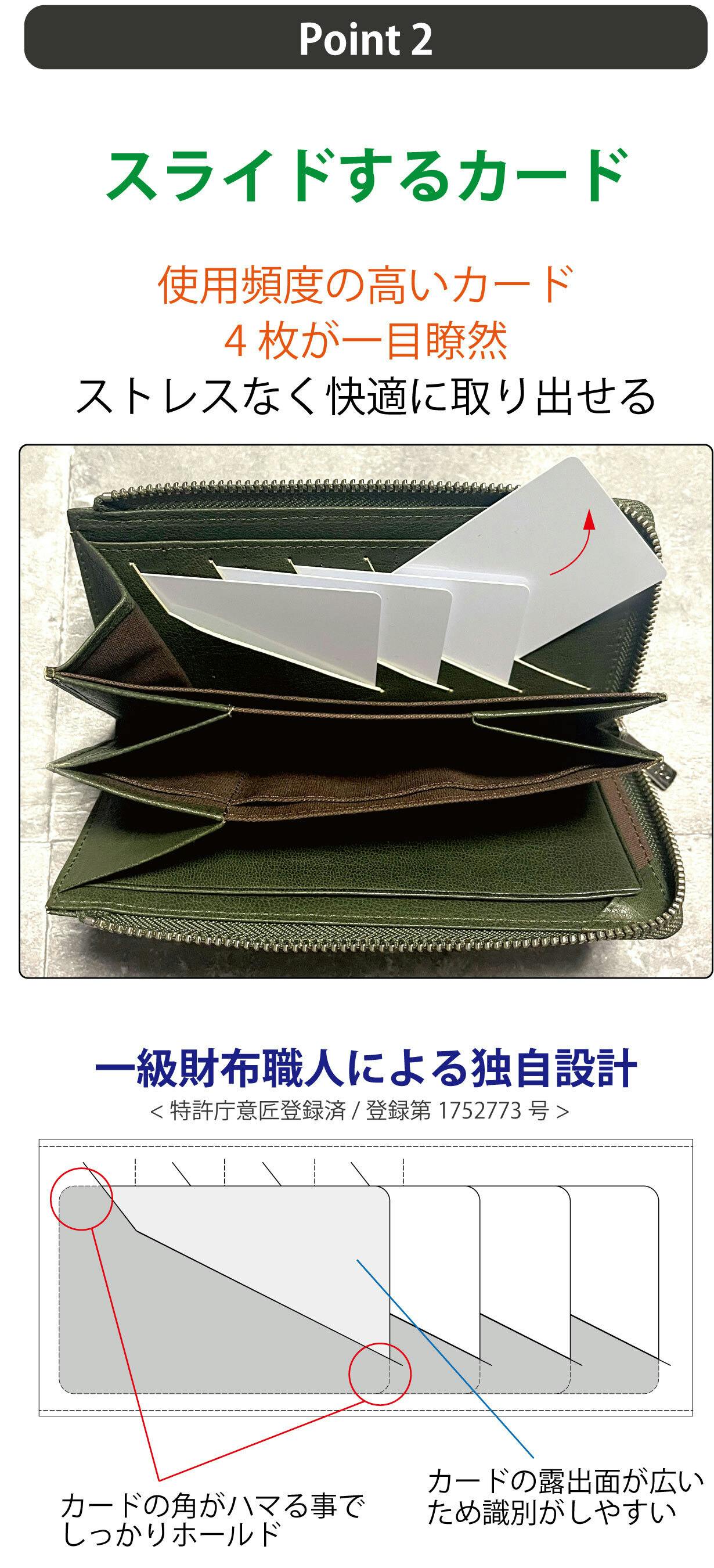 独自設計により、「3つ」もの特許庁意匠登録済仕様で快適の極みを追求したミニ長財布。