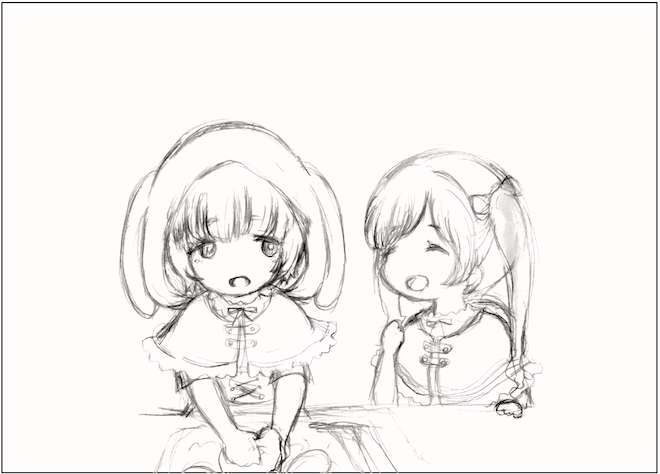 (イラストレーターさんに提案したヒロイン"イヴ"のラフ画/気が強く明るい女の子)