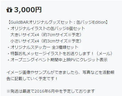 缶バッチ、ストラップ、コースターを各3000円のリターンに追加させていただいております!
