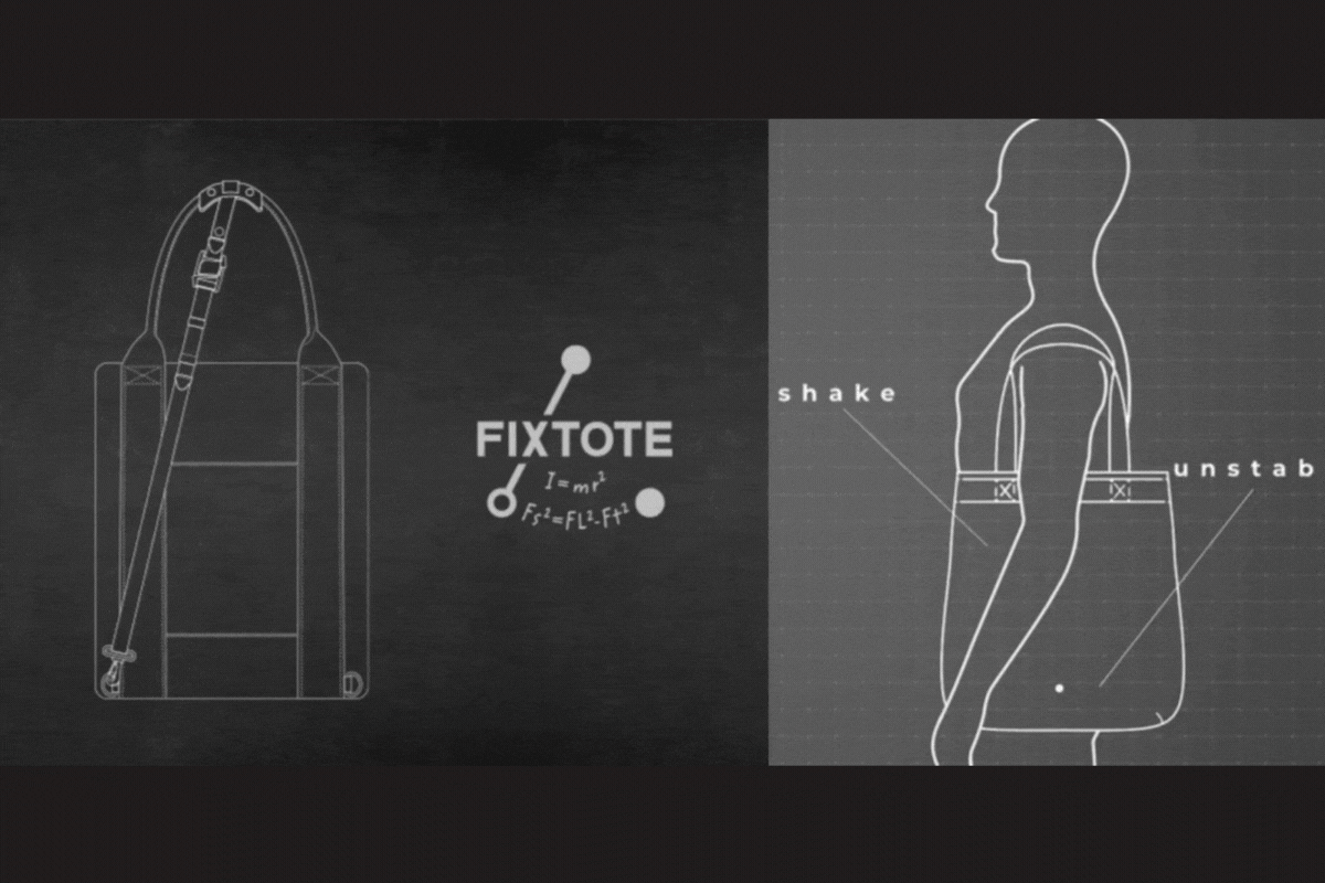 「FIXTOTE(フィックストート)」は、ニュートン物理学を基本にし、東京工業大学の生体力学の英知を駆使し生まれた、「身体に固定可能」でなリュックでもトートでもない全く新しいバッグです。