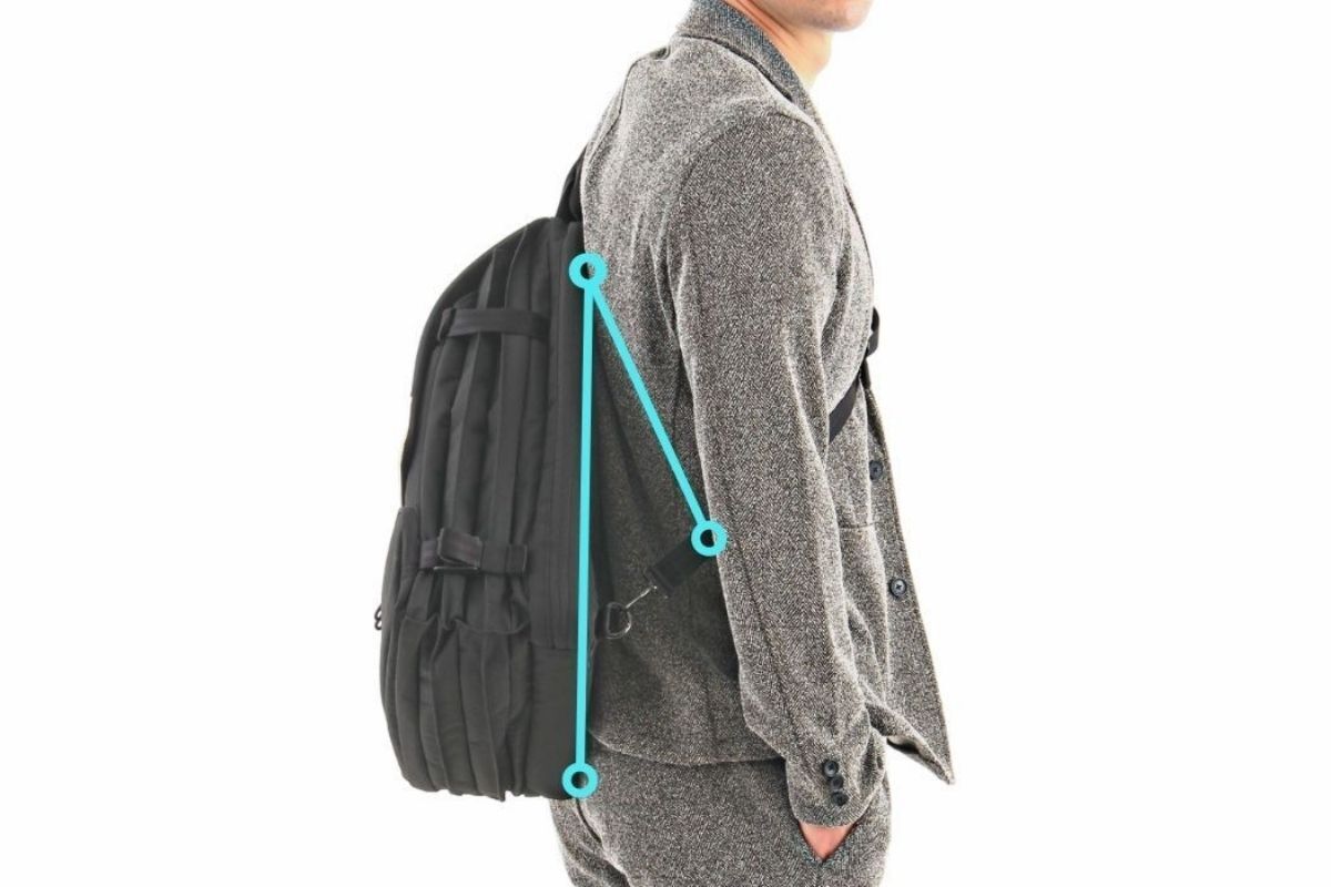 かばんが背中に密着しづらく(密着面積が少ない)ムレずらい構造!