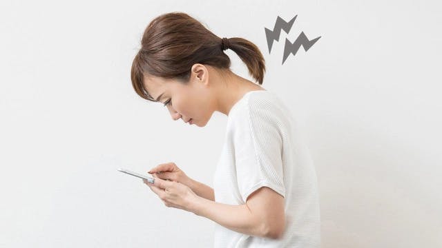 ストレートネックを引き起こす原因は、「姿勢」です。スマホを見ている時は、首や顔は下を向いていることが多く、頚椎がストレートになっています。画面に集中すればするほど、そのような不良姿勢を長時間続けることになります。