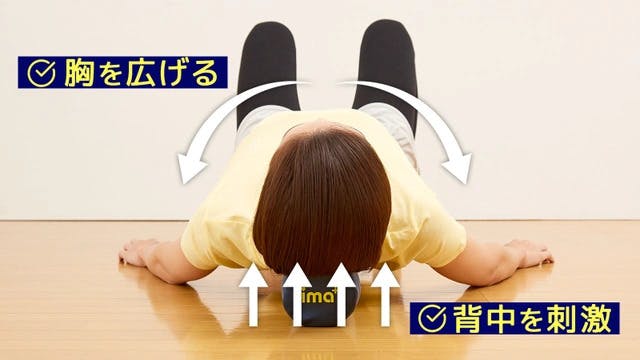 胸を広げて丸くなった背中をぐーっと伸ばし、背中を心地よく刺激します。