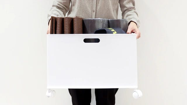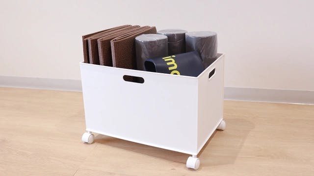 分解できる「ストレッチ用ポール」と たためる「エクササイズマット」なら、一緒にまとめてもかさばらず、お部屋に置いておいても邪魔にならないからスッキリ収納できます。