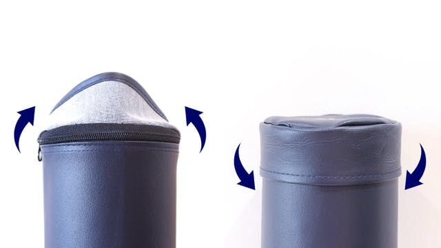 芯部を3つ入れた後、フタを閉めてファスナーで閉じてください。