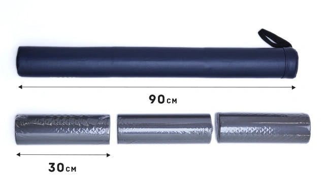 「3分割背筋ストレッチ用ポール」なら、芯部が3つに分割されているので、カバーの中から芯部を取り出し分解すれば、こんなにすっきりコンパクトに!