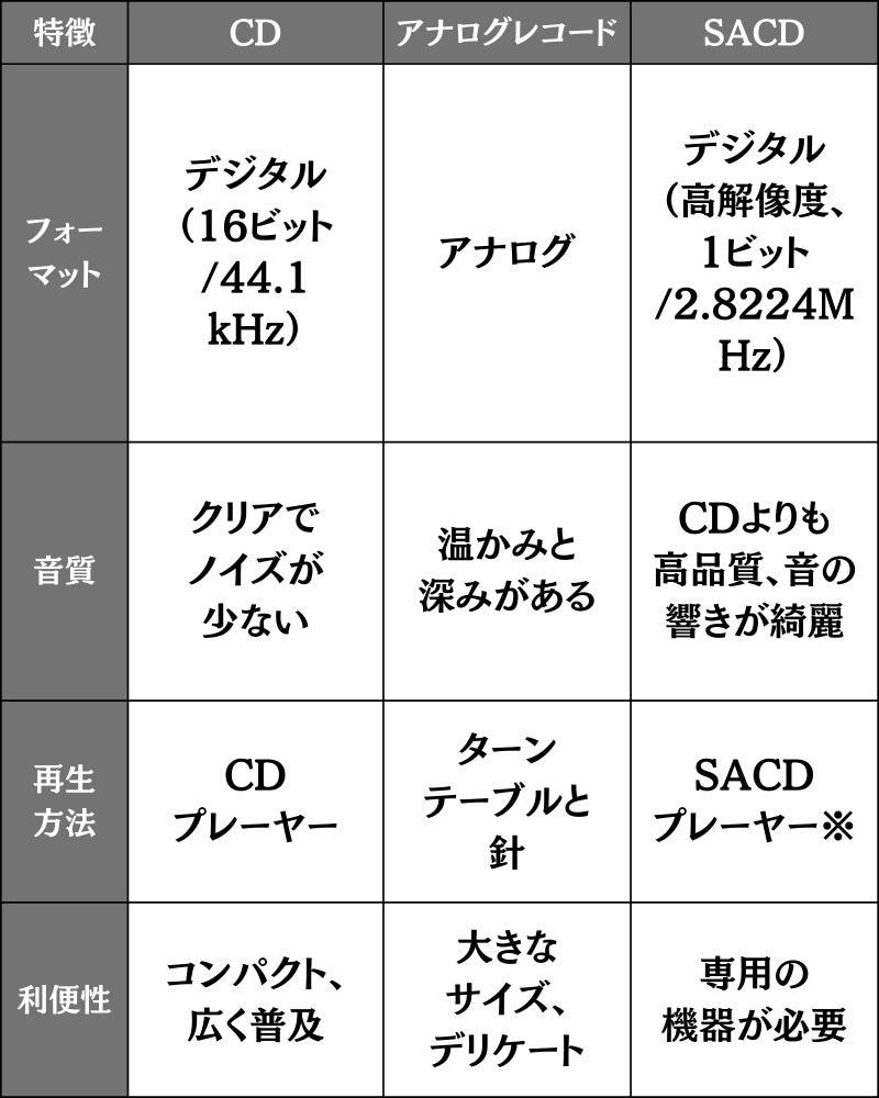 ■CD・アナログレコード・SACDの違い