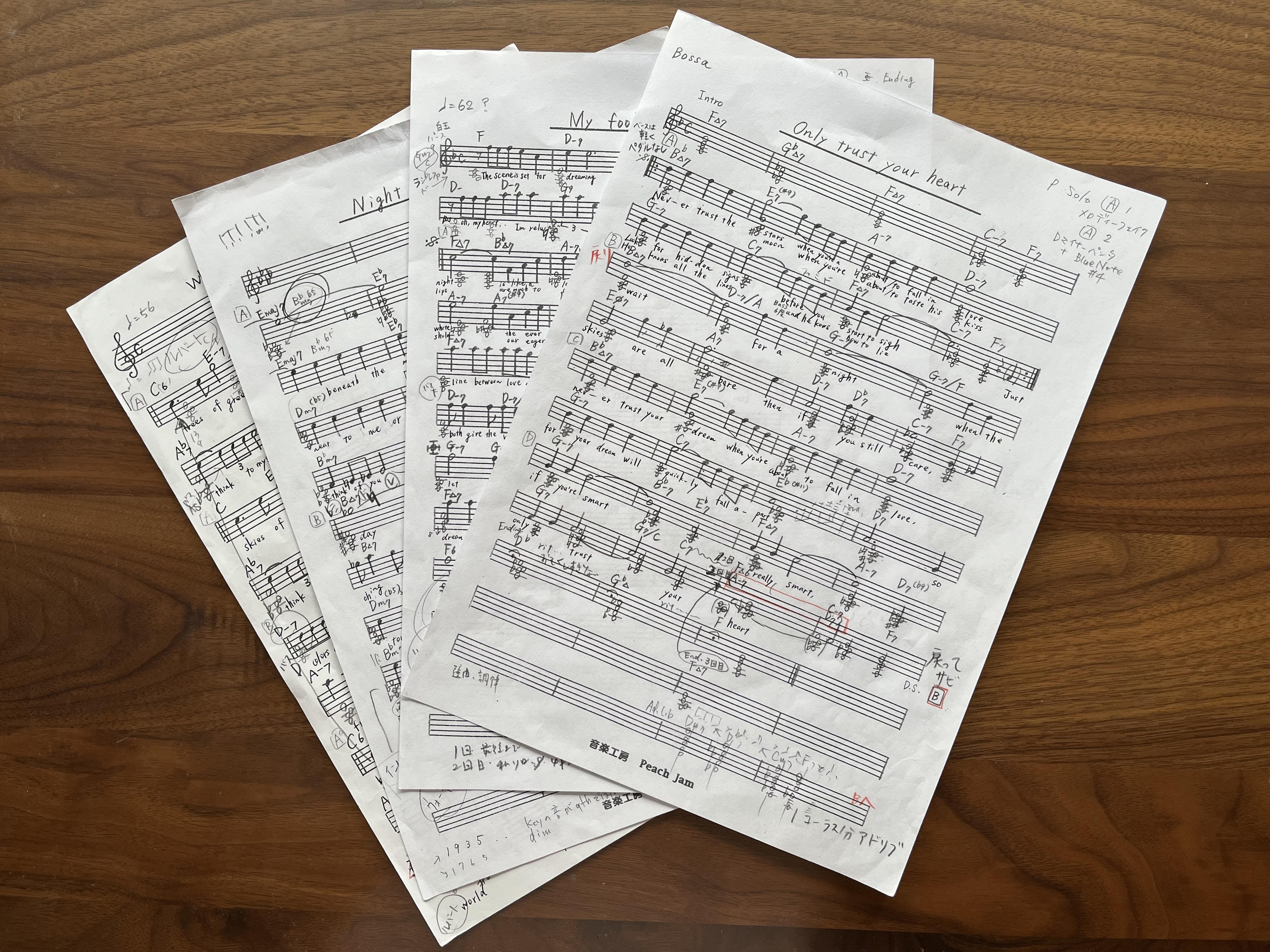 今回はジャズの方々が共有するという、1曲につき1枚ぺらんの楽譜で挑戦してみました!(手書きです。理由は動画の中で話しています(^^♪)